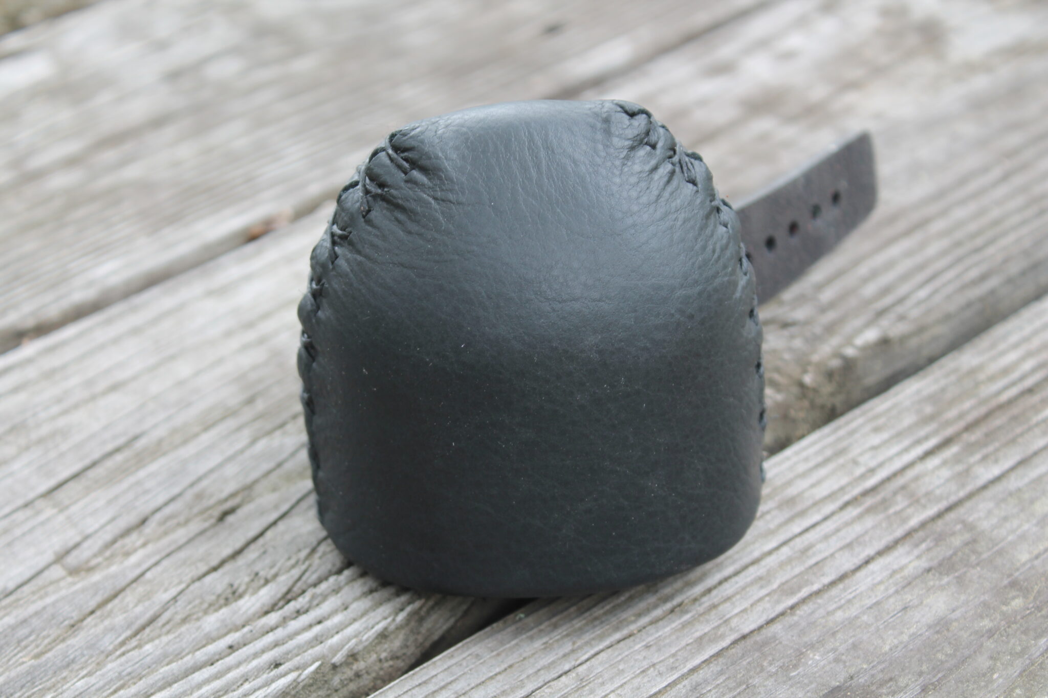 STEP 2: With the strap on one side and the brass post on the other, place the quiver against the bow limb at desired spot (as seen in video) Place thumb by the brass post, press against the limb, grab the strap with your other hand, pull the strap over the opposite side of the limb and secure on post using desired hole. (see video)