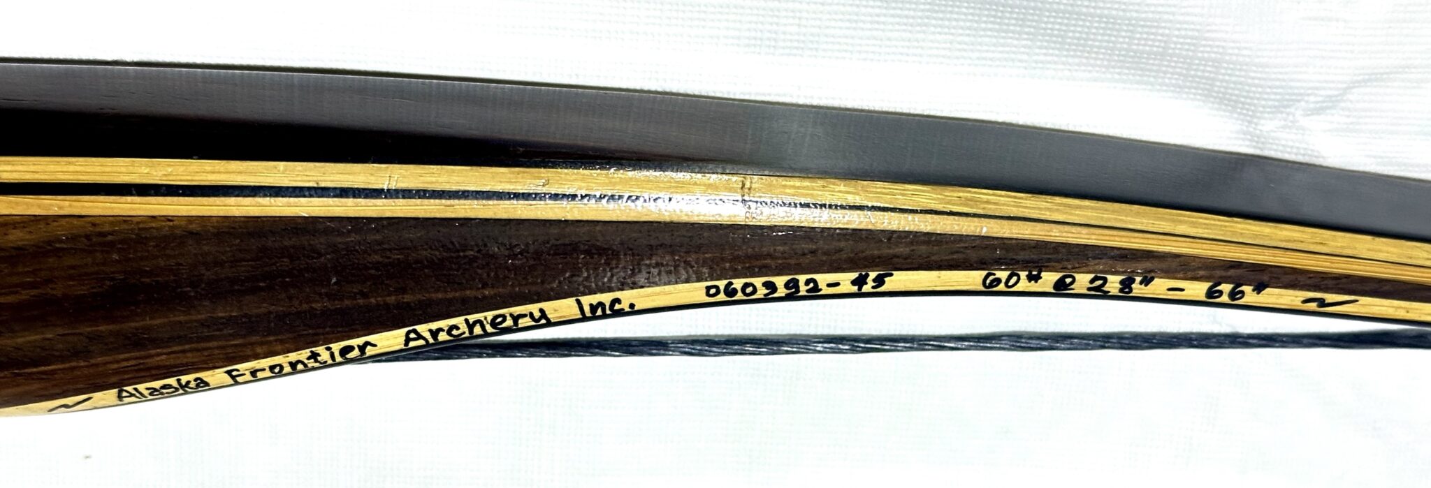 Black Wolf Longbow by Alaska Frontier Archery (Jack B. Harrison) – RH 2pc Takedown Longbow 66″ 60# @ 28″ – KLA239