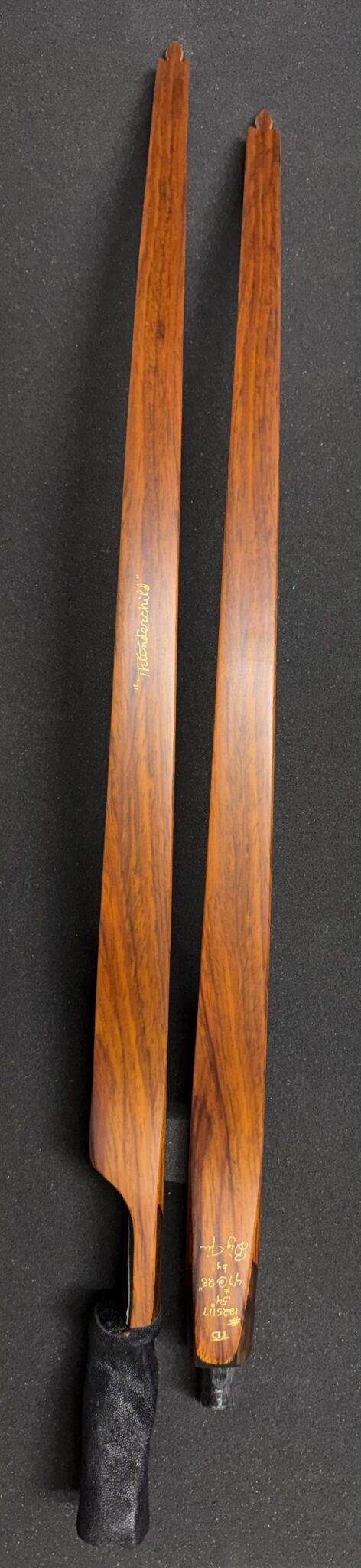Our Thunder Child is a somewhat radical reflex deflex design with a forward handle. The Thunder Child will fast become one of your favorite longbows. Designed to allow the shooter to utilize a bow that is 6-8″ shorter than their normal longbow without stacking and finger pinch normally associated with the “Short Bow”. Stable and light on its feet, the Thunder Child does not lack in performance. Choose either a 1- or 2-piece in this design, with all the same options as our Buffalo model, and watch as your friends gather to join in the fun. Jim will call when it’s your turn for the bow build to get info.
